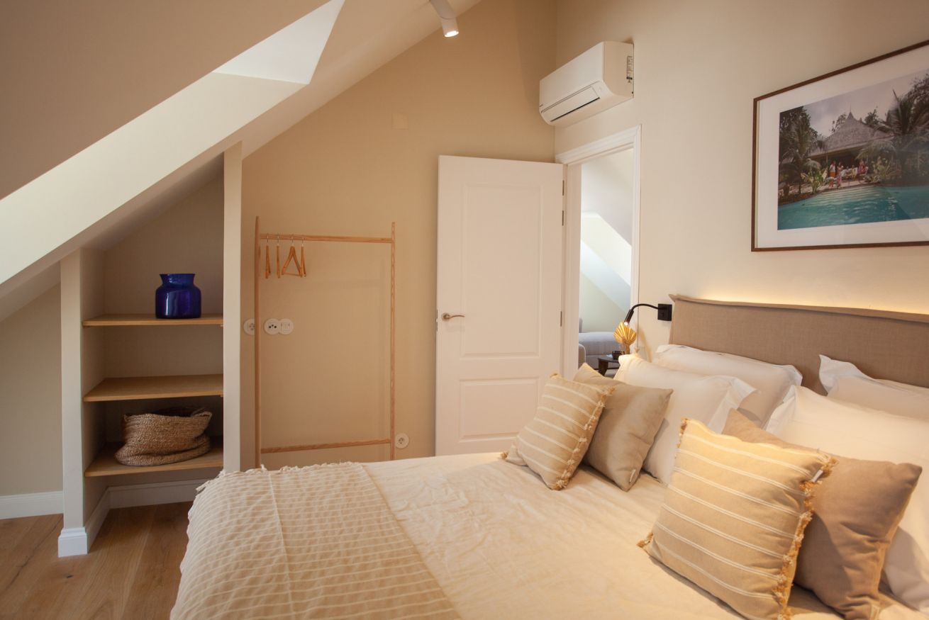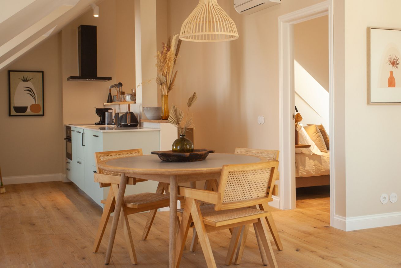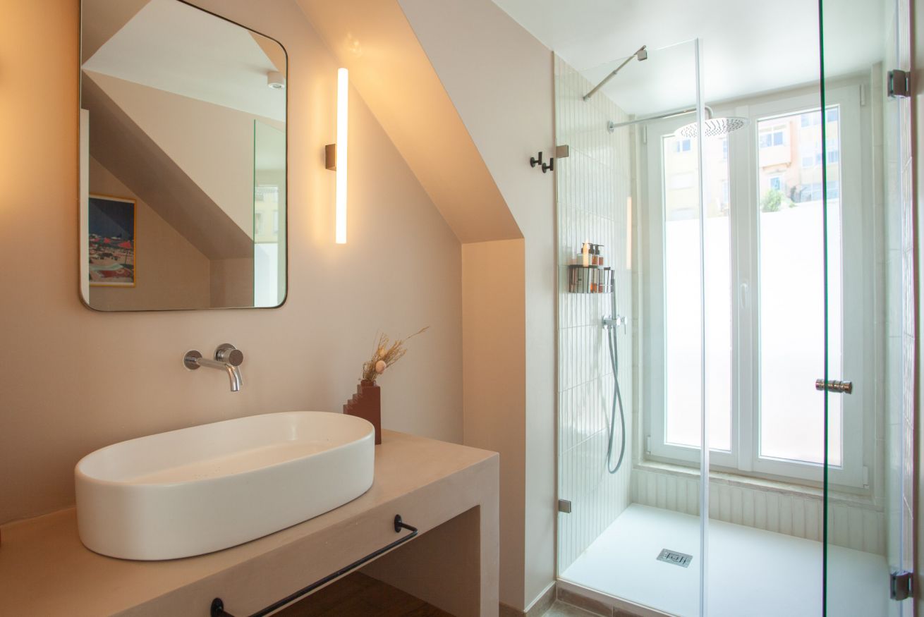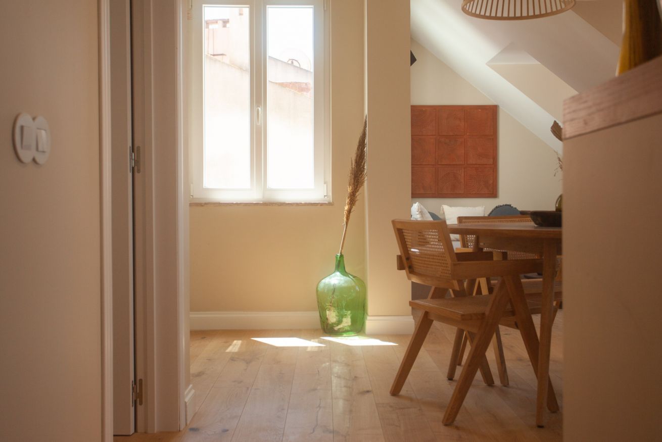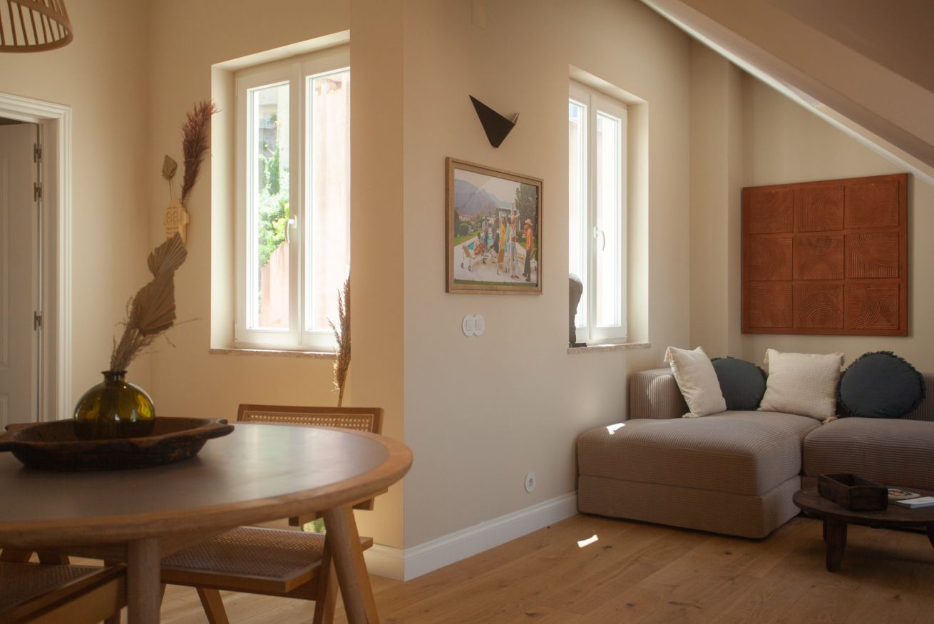 A charming one-bedroom attic filled with light and views over the Intendente valley and back over the houses of Vila Rodrigues.