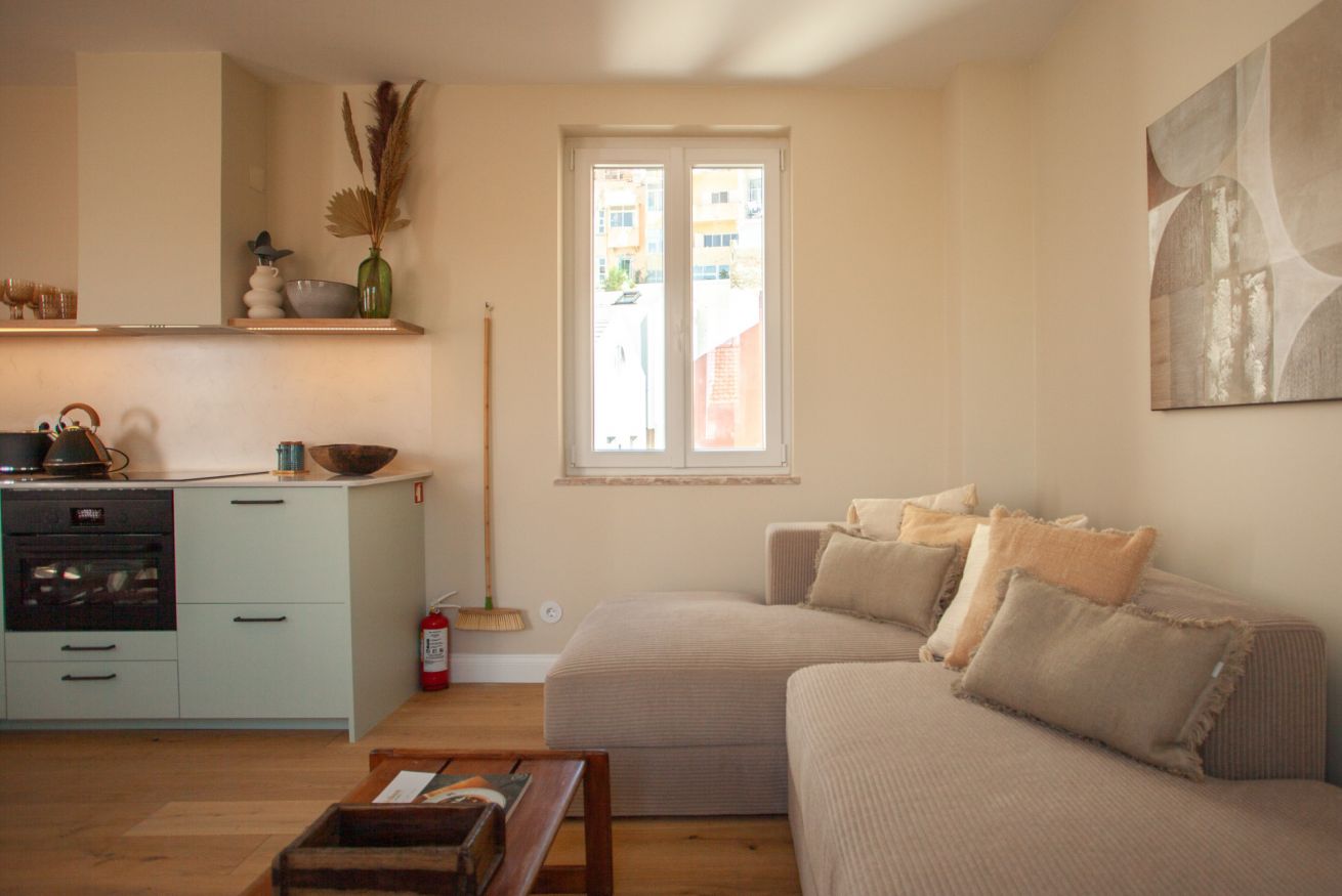 An elegant two bedroom, two bathroom apartment in the front building of Vila Rodrigues, filled with natural light.